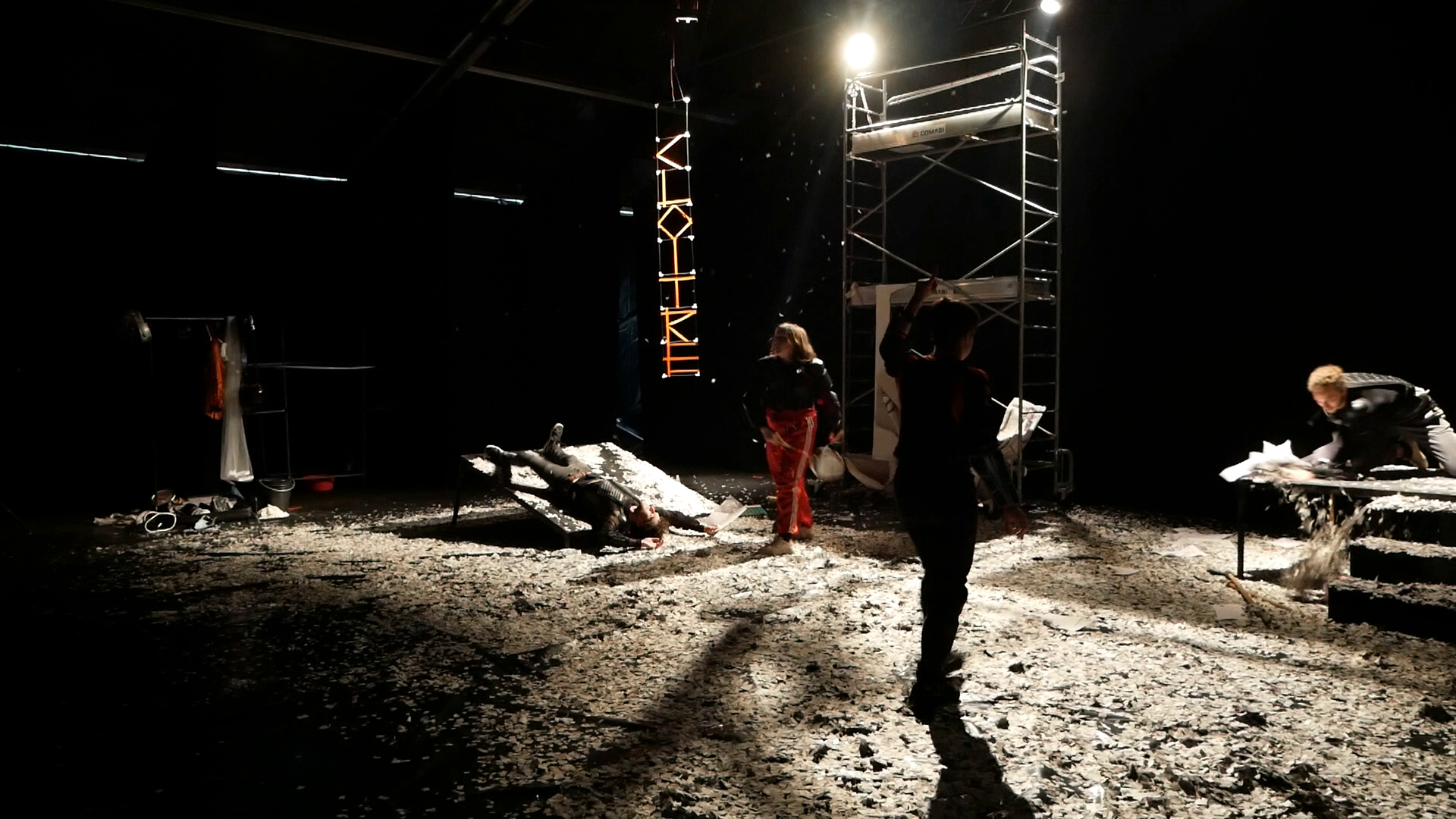 Spectacle vivant mêlant théâtre, musique, dispositifs techniques et multimédias.