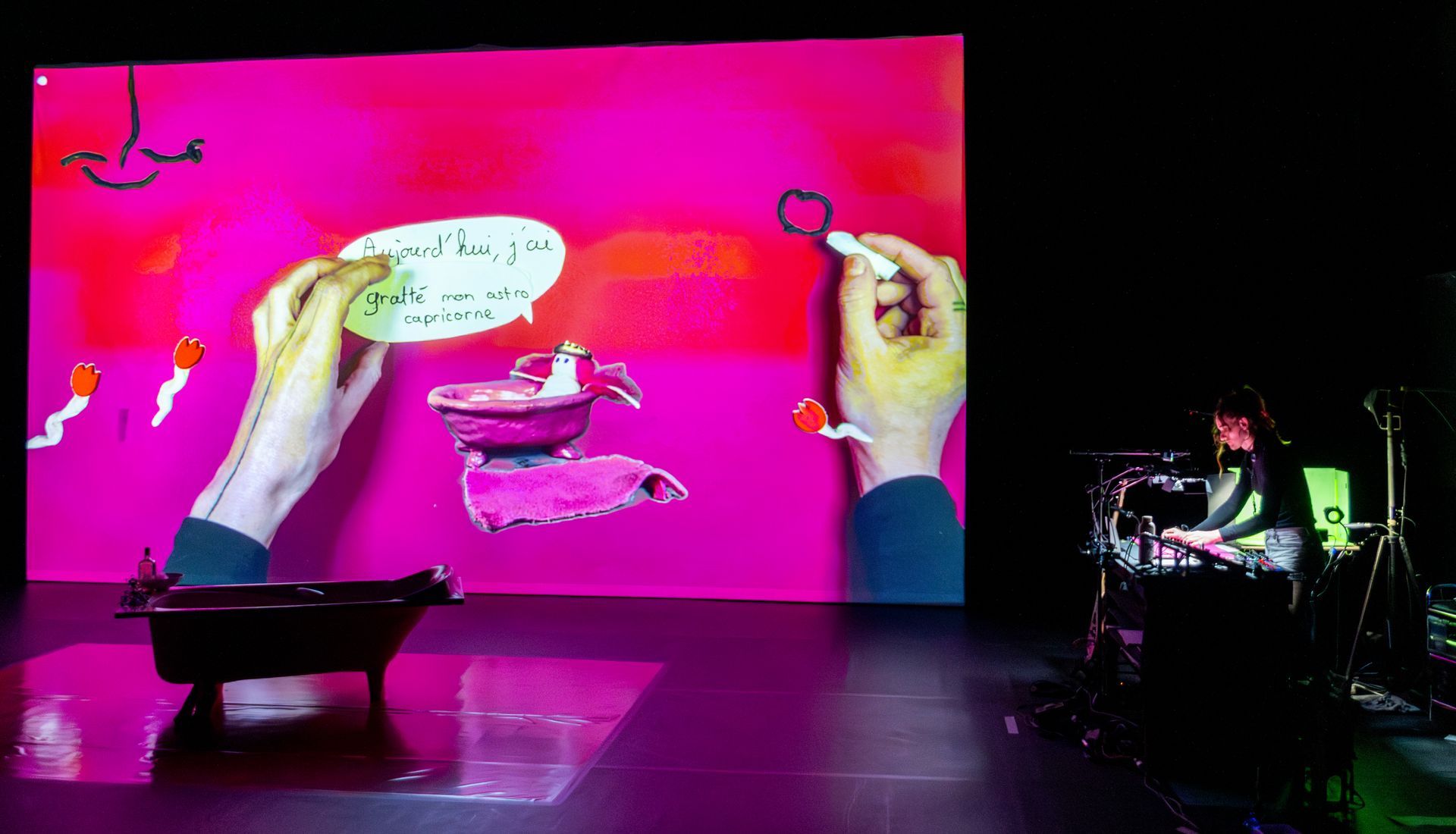 Pour sa deuxième création, Jenny Victoire Charreton invite Daphné Demaison avec qui elle va tisser, à quatre main, mots de la poétèsse Luz Volckmann, créations plastiques de Mag Lévêque, marionnettes, témoignages, signes et musique live pour créer une performance multimédia autour des vécus transféminins.